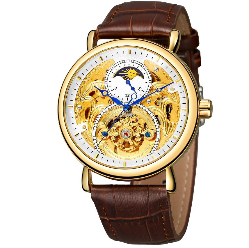 Men’s Sun Moon Phase Waterproof Tourbillon Automatic Mechanical Wristwatch